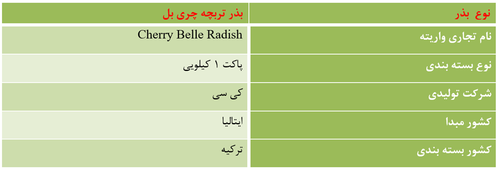 برچسب ها : بذر , بذر تربچه , تربچه چری بل